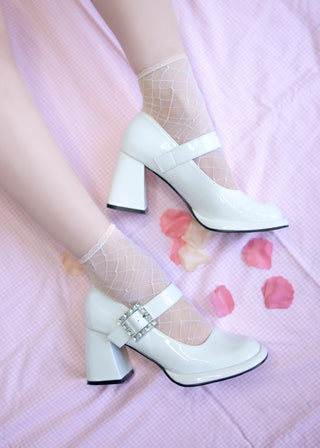 Ballet Flats Rhinestone Pointed Toe Fishnet Ankle Buckle Strap shoes